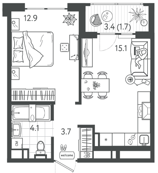 | 1 | 35.55 / 12.9 м² | от 9 269 000 руб. (260 731 руб./м²) | Планировка | |