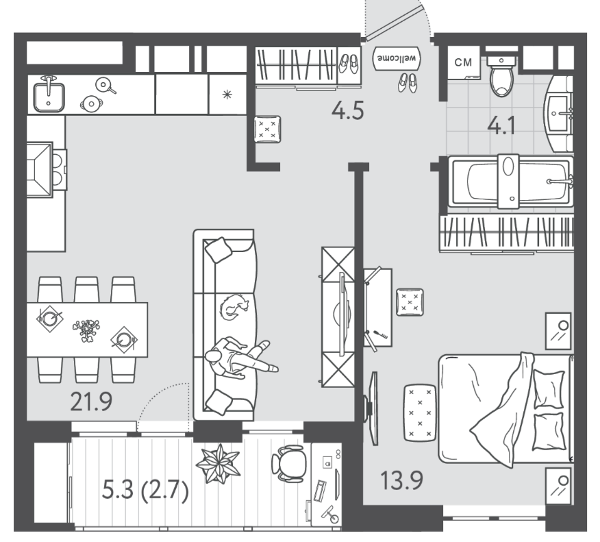 | 2 | 58.1 / 27.5 м² | от 17 430 000 руб. (300 000 руб./м²) | Планировка | |