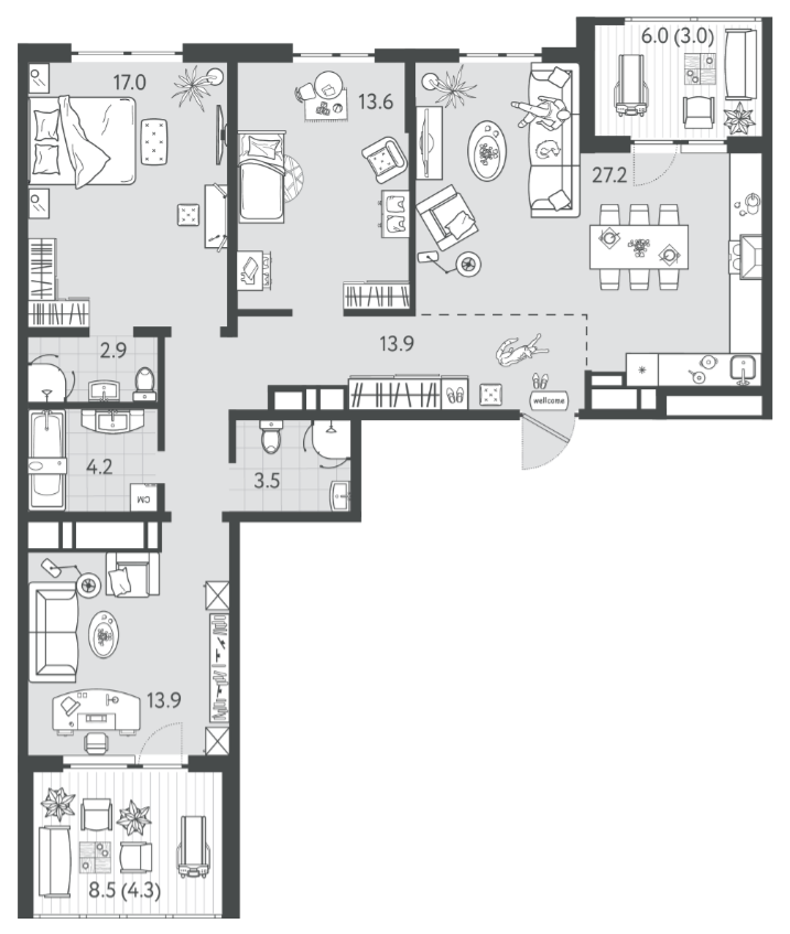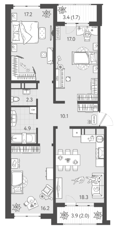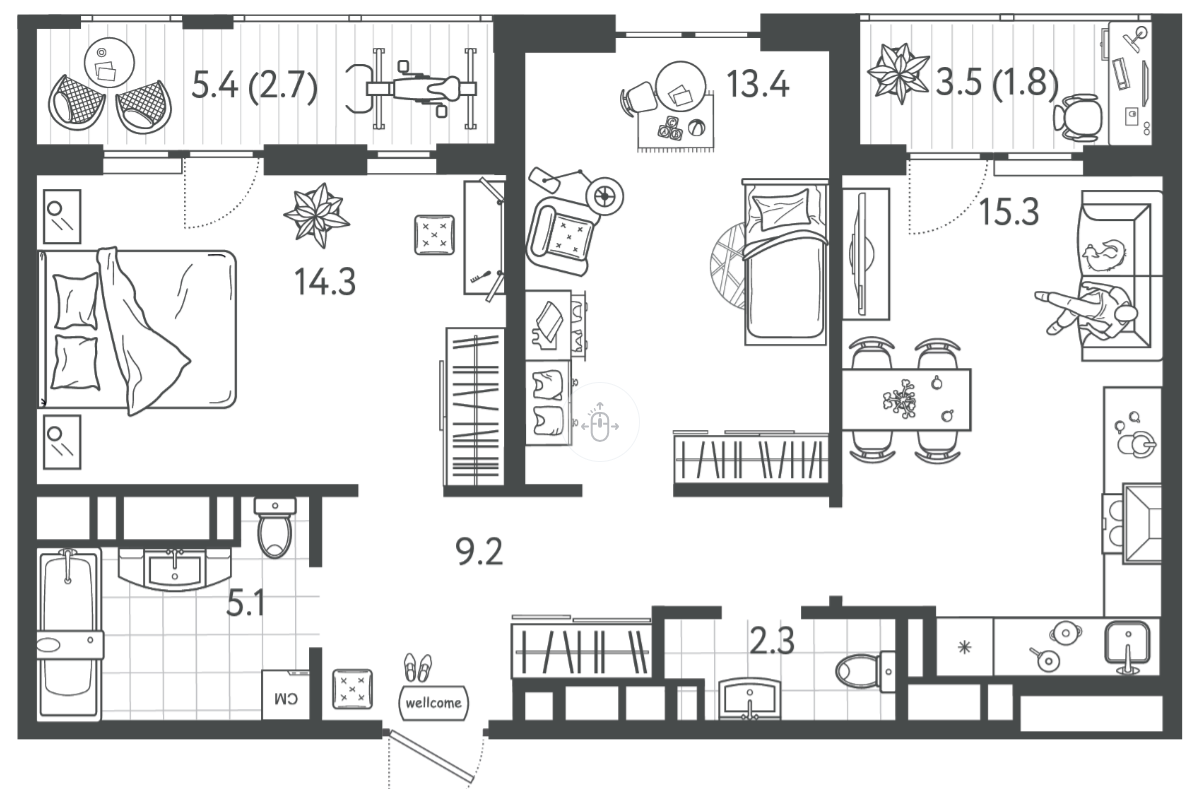 | 3 | 91.45 / 49.3 м² | от 27 435 000 руб. (300 000 руб./м²) | Планировка |