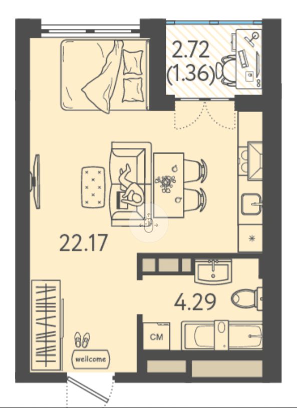 | студия | 23.0 / 17.22 м² | от 3 680 000 руб. (160 000 руб./м²) | Планировка | |