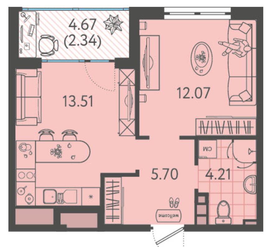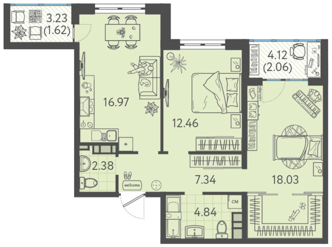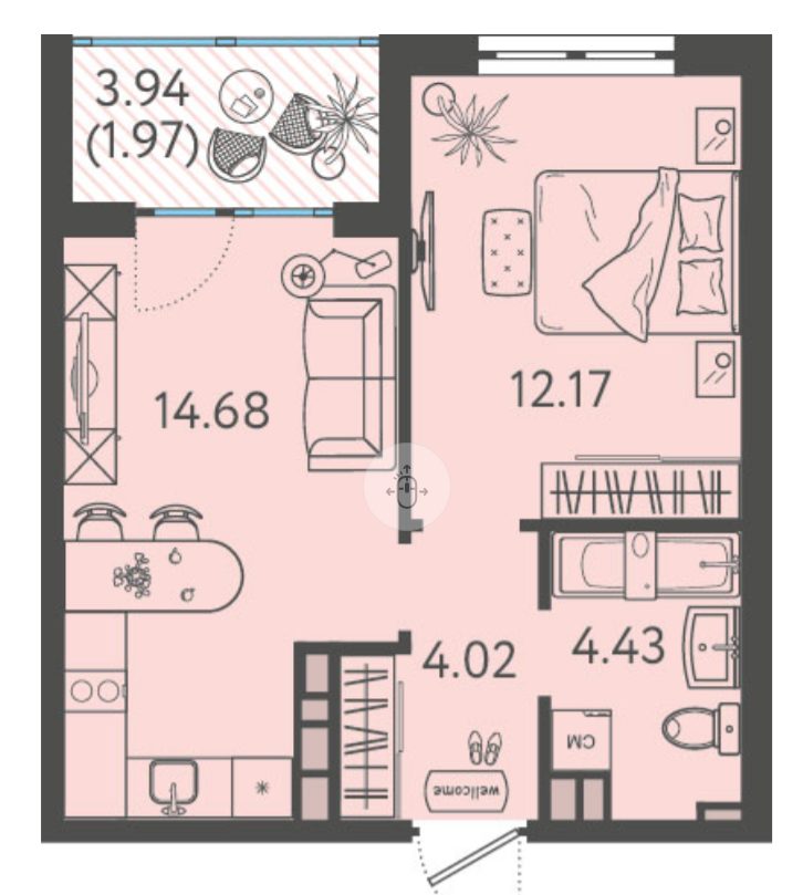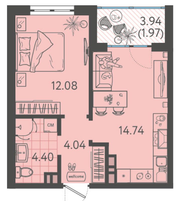 Приветливый менеджер в офисе продаж подобрал для нас ну просто суперскую двушку! Хотя по сути это целая евротрешка, кухня настолько большая, что можно даже небольшую гостиную там обустроить, а в лоджии поставить кресло и неспешно потягивать кофе по утрам.