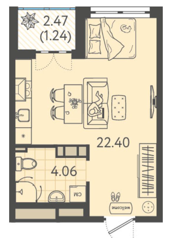 | студия | 27.5 / 22.40 м² | от 4 297 800 руб. (156 284 руб./м²) | Планировка | |