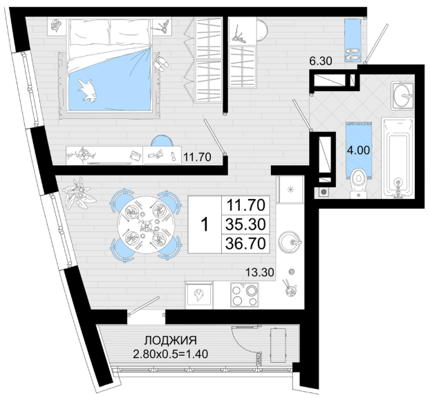| 1 | 35.7 / 11.7 м² | от 7 497 000 руб. (210 000 руб./м²) | Планировка | |