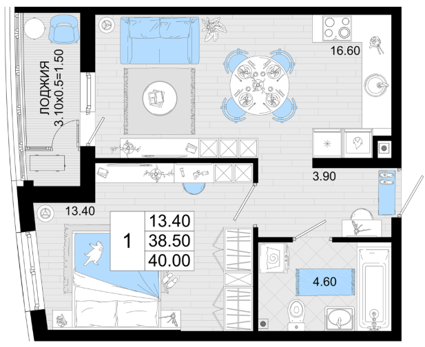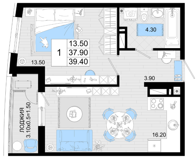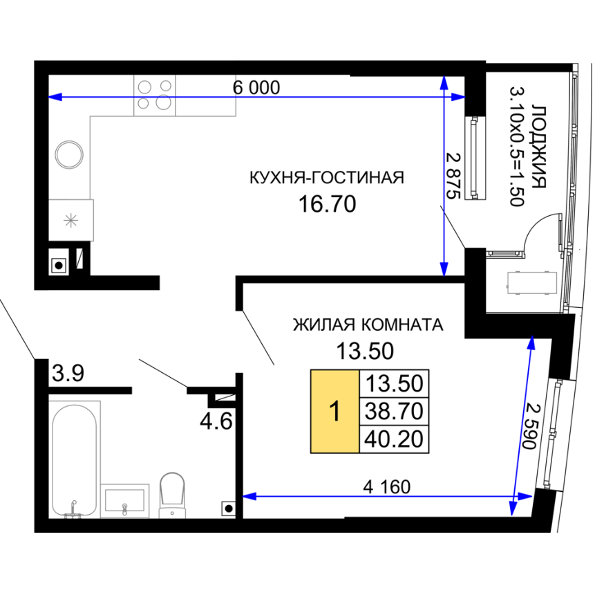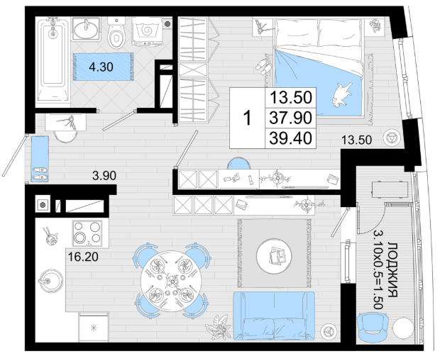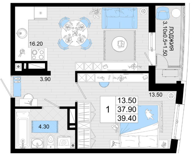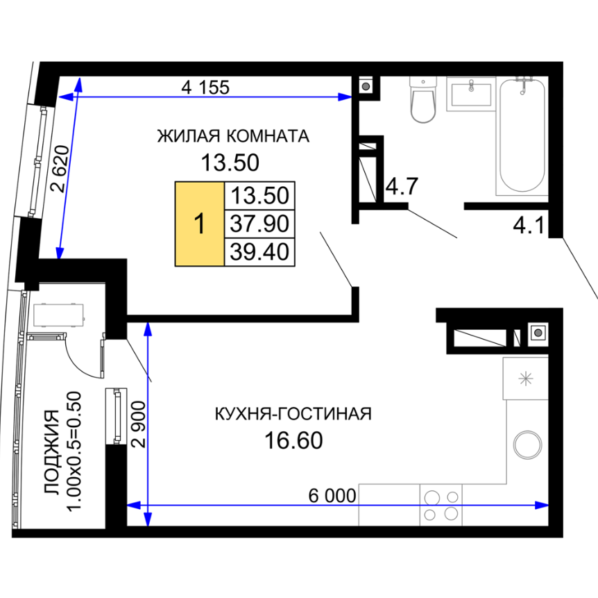 | 1 | 39.4 / 13.5 м² | от 8 274 000 руб. (210 000 руб./м²) | Планировка | |