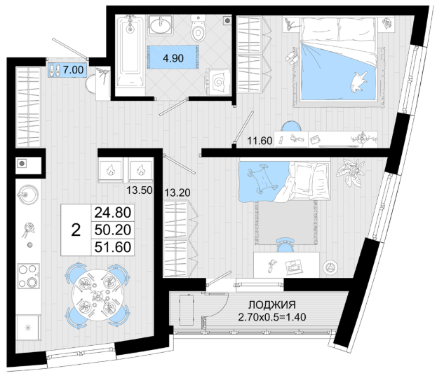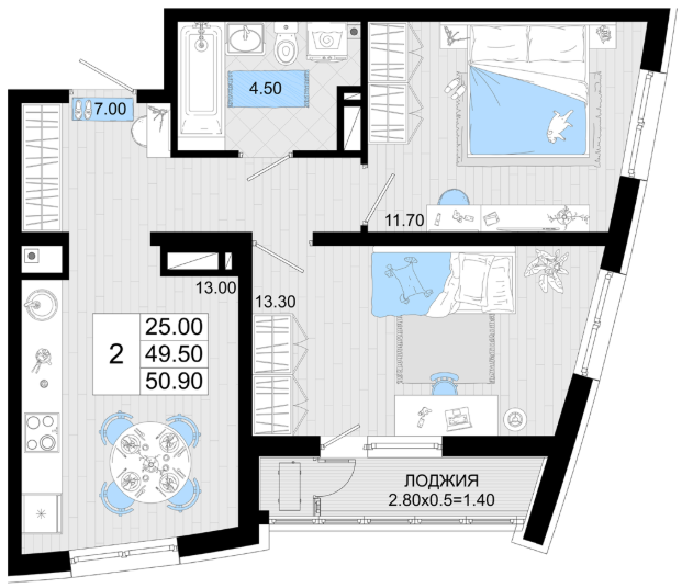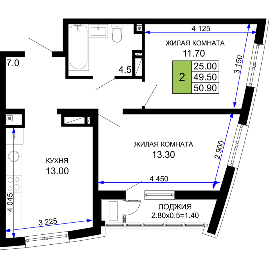 | 2 | 50.90 / 25.0 м² | от 10 180 000 руб. (200 000 руб./м²) | Планировка | |