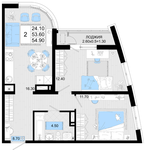| 2 | 55.86 / 24.79 м² | от 10 892 700 руб. (195 000 руб./м²) | Планировка | |