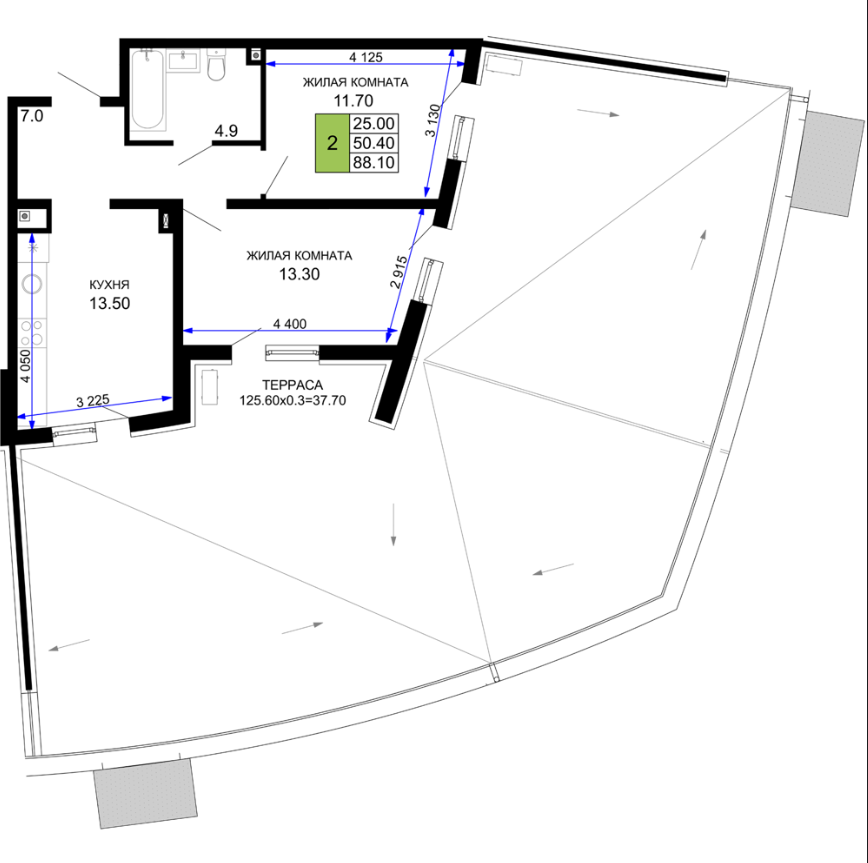 | 2 | 88.1 / 25.0 м² | от 18 501 000 руб. (210 000 руб./м²) | Планировка |