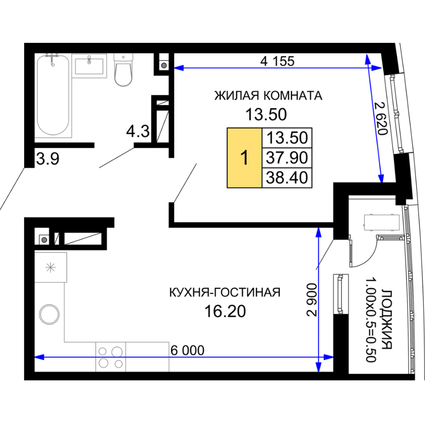 | 1 | 38.40 / 13.50 м² | от 7 680 000 руб. (200 000 руб./м²) | Планировка | |