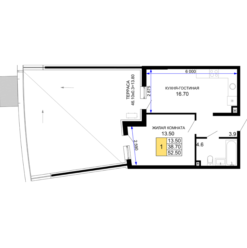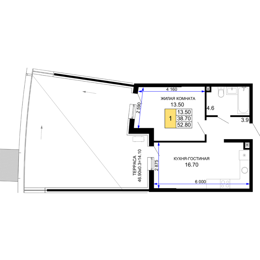 | свободная планировка | 46.62 м² | Планировка | Литер 19 | |