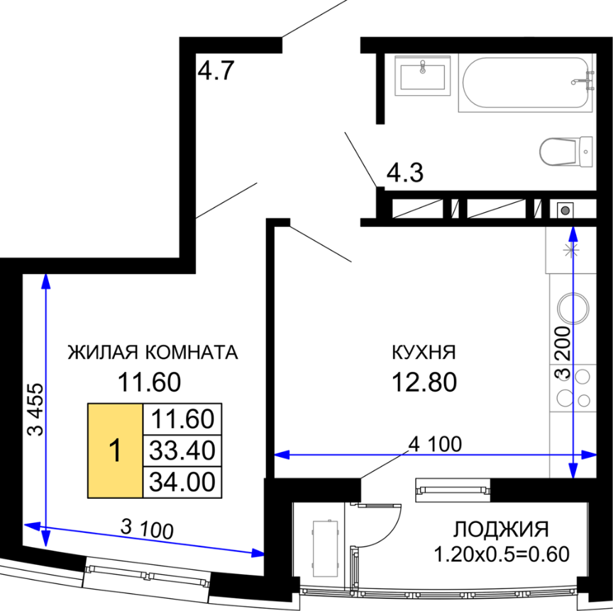 | 1 | 34.0 / 11.6 м² | от 6 800 000 руб. (200 000 руб./м²) | Планировка | |