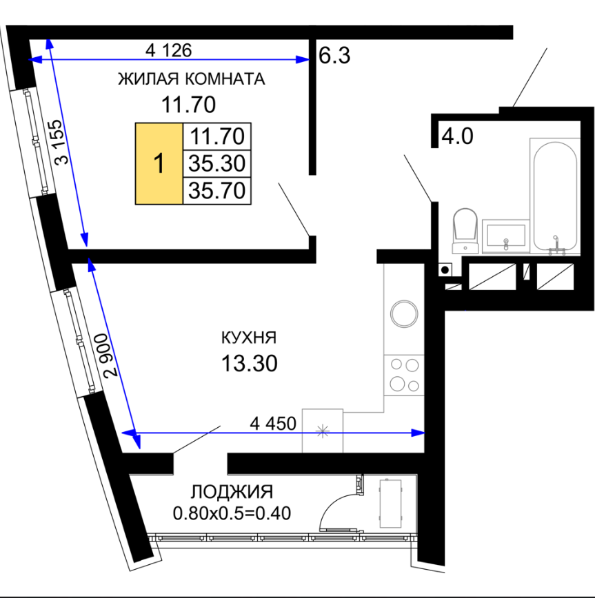 | 1 | 35.0 / 11.6 м² | от 7 350 000 руб. (210 000 руб./м²) | Планировка | |