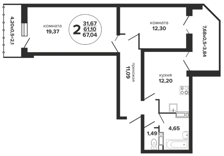 Квартира: 2-к / 67.04 м²