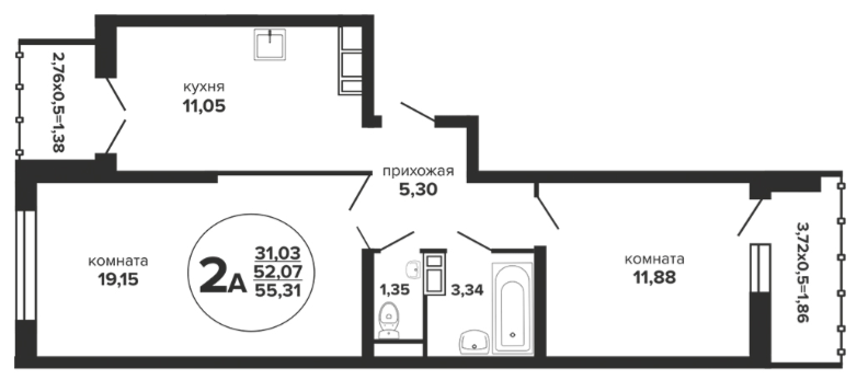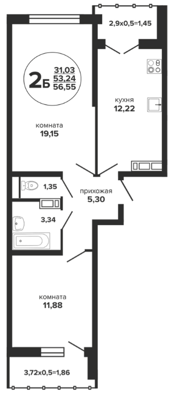 Квартира: 2-к / 55.31 м²