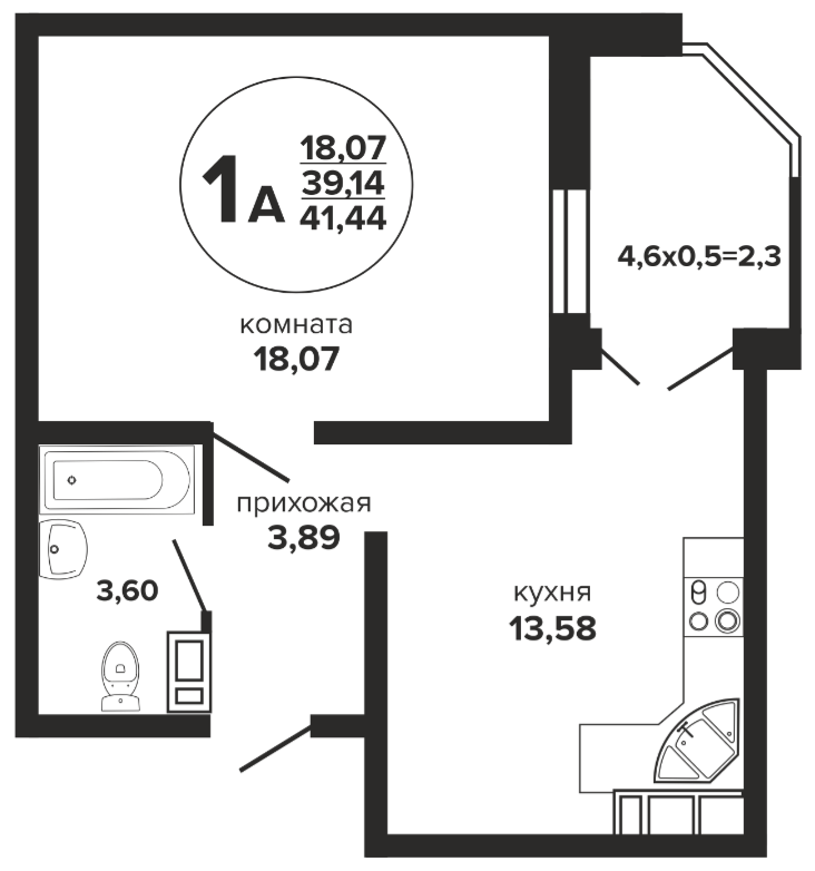 1 41.44 / 18.07 м² от 5 052 000 руб. (121 911 руб./м²) Планировка