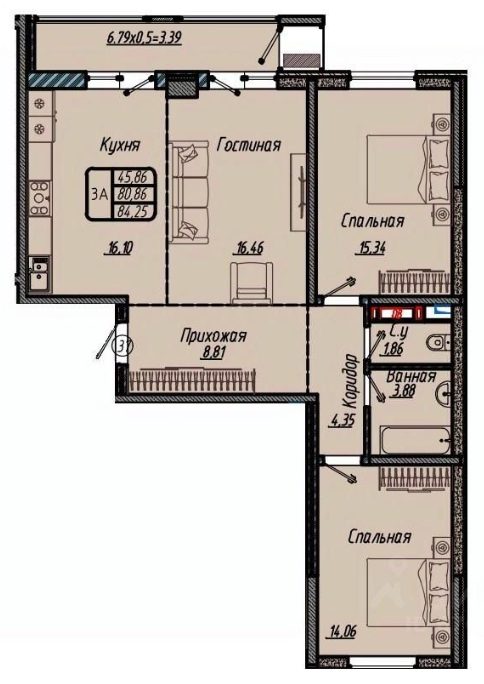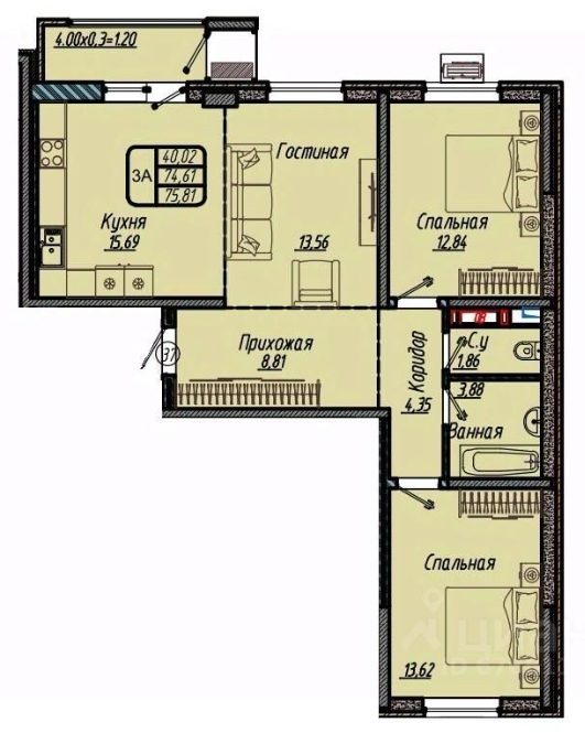 | 3 | 74.36 / 41.34 м² | от 12 641 200 руб. (170 000 руб./м²) | Планировка |