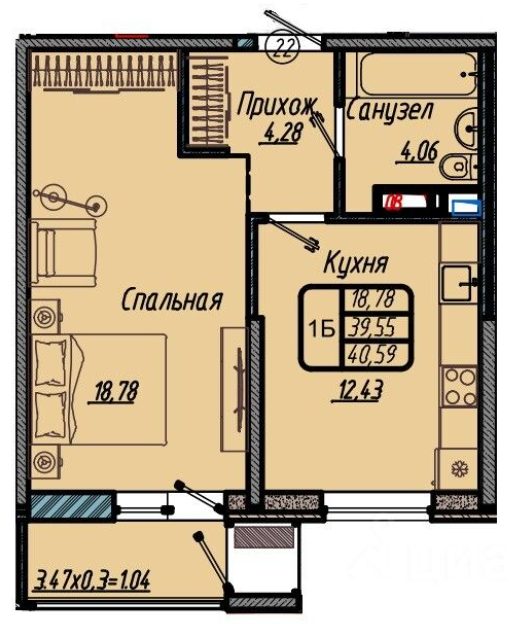 | 1 | 40.59 / 18.78 м² | от 6 900 300 руб. (170 000 руб./м²) | Планировка | |
